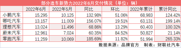 蔚来6月销量今年首次突破1万,达1.30万辆,同比增长60%,环比增长85%。二线新势力高歌猛进,埃安/哪吒/零跑/极氪6月单月销量分别为2.41/1.32/1.13/0.43万辆。【财联社】